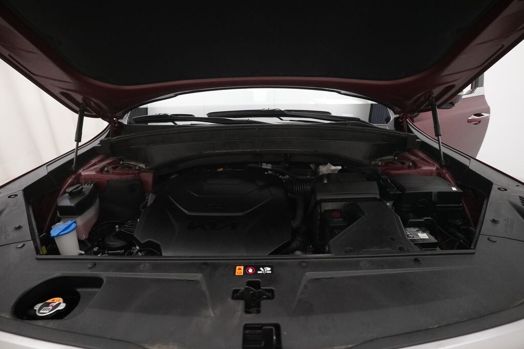Kia Certified Pre-Owned Certified, 10 Speakers, 3.648 Axle Ratio, 3rd Row Seats, 4-Wheel Disc Brakes, ABS Brakes, Air Conditioning, Alloy wheels, AM/FM Radio, Available Sirius XM Radio, Apple CarPlay & Android Auto, Auto High-beam Headlights, Auto-dimming Rear-View mirror, Automatic temperature control, Brake Assist, Bumpers: body-color, Carpet Floor Mats, Compass, Delay-off headlights, Driver door bin, Driver vanity mirror, Dual front impact airbags, Dual front side impact airbags, Dual-Climate Control, Electronic Stability Control, Emergency communication system: 911 Connect, Four wheel independent suspension, Front anti-roll bar, Front Bucket Seats, Front Center Armrest, Front Fog Lights, Front reading lights, Fully Automatic Headlights, Garage door transmitter: HomeLink, harman/kardon® Speakers, Heads-Up Display, Heated & Ventilated Front Bucket Seats, Heated Front Seats, Heated Rear Seats, Heated Sideview Mirrors, Heated Steering Wheel, Illuminated Entry, Knee airbag, Leather Shift Knob, Leather steering wheel, Low Tire Pressure Warning, Memory seat, Mud Guard Kit, Navigation System, Occupant sensing airbag, Outside Temperature Display, Overhead airbag, Overhead console, Panic Alarm, Passenger door bin, Passenger vanity mirror, Power Adjusting Driver Seat, Power door mirrors, Power Liftgate, Power moonroof, Power passenger seat, Power steering, Power Windows, Premium Nappa Leather Seat Trim, Radio data system, Radio: AM/FM harman/kardon Audio System, Rain Sensing Wipers, Rear air conditioning, Rear anti-roll bar, Rear audio controls, Rear reading lights, Rear side impact airbag, Rear Spoiler, Rear Window Wiper, Rear-View Camera, Rear/Front Window Defroster, Reclining 3rd row seat, Remote Keyless Entry, Roof rack: rails only, Security System, Smart Key w/ Push Button and Remote Start, Speed control, Speed-sensing steering, Split Folding Rear Seat, Steering Wheel Mounted Controls, Tachometer, Telescoping steering wheel, Tilt steering wheel, Traction Control, Trip computer, Turn Signal Indicator Mirrors, Variably intermittent wipers, Ventilated Front Seats, Ventilated rear seats, Wheels: 20" x 7.5" Black Finish.