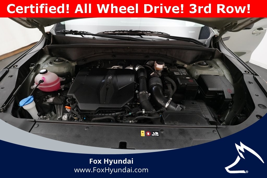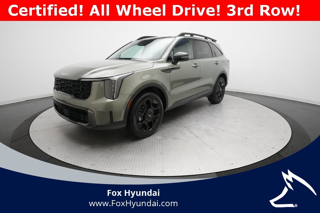 Kia Certified Pre-Owned Certified, AWD, 3.316 Axle Ratio, 3rd Row Seats, 4-Wheel Disc Brakes, 6 Speakers, ABS Brakes, Air Conditioning, Alloy wheels, AM/FM Radio, Available Sirius XM Radio, Apple CarPlay & Android Auto, Auto High-beam Headlights, Auto-dimming Rear-View mirror, Automatic temperature control, Brake Assist, Bumpers: body-color, Carpeted Floor Mats, Delay-off headlights, Driver door bin, Driver vanity mirror, Dual front impact airbags, Dual front side impact airbags, Dual-Climate Control, Electronic Stability Control, Emergency communication system: 911 Connect, Four wheel independent suspension, Front anti-roll bar, Front Bucket Seats, Front Center Armrest, Front Fog Lights, Front reading lights, Fully Automatic Headlights, Heated Front Bucket Seats, Heated Front Seats, Heated Sideview Mirrors, Illuminated Entry, Knee airbag, Leather Shift Knob, Leather steering wheel, Low Tire Pressure Warning, Navigation System, Occupant sensing airbag, Outside Temperature Display, Overhead airbag, Overhead console, Panic Alarm, Passenger door bin, Passenger vanity mirror, Power Adjusting Driver Seat, Power door mirrors, Power Liftgate, Power passenger seat, Power steering, Power Windows, Radio data system, Radio: AM/FM Audio System, Rear anti-roll bar, Rear reading lights, Rear side impact airbag, Rear Spoiler, Rear Window Wiper, Rear-View Camera, Rear/Front Window Defroster, Remote Keyless Entry, Security System, Smart Key w/ Push Button and Remote Start, Speed control, Speed-sensing steering, Split Folding Rear Seat, Steering Wheel Mounted Controls, SynTex Artificial Leather Seat Trim, Tachometer, Telescoping steering wheel, Tilt steering wheel, Traction Control, Trip computer, Turn Signal Indicator Mirrors, Variably intermittent wipers, Wheels: 8.5J x 20" Gloss Black X-Line Alloy, AWD.