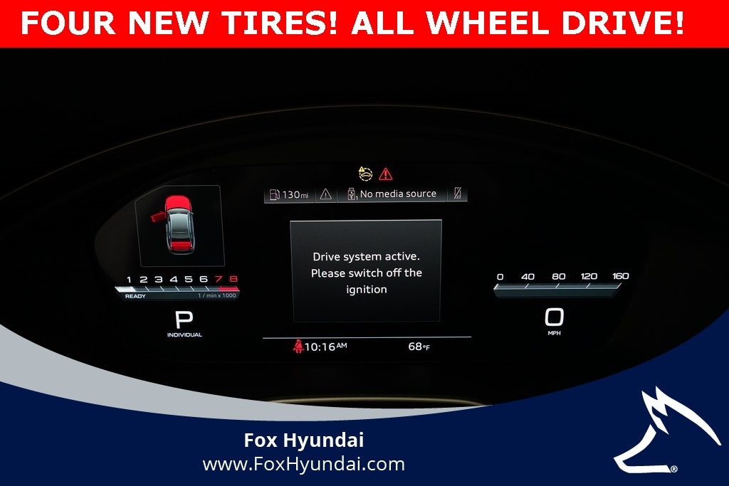 7-Speed Automatic S tronic, quattro, Black Leather, 10 Speakers, 4-Wheel Disc Brakes, ABS Brakes, Air Conditioning, Alloy wheels, AM/FM Radio, Anti-whiplash front head restraints, Audi smartphone interface (Apple CarPlay/Android Auto), Auto High-beam Headlights, Auto-dimming Rear-View mirror, Automatic temperature control, Brake Assist, Bumpers: body-color, Compass, Delay-off headlights, Driver door bin, Driver vanity mirror, Dual front impact airbags, Dual front side impact airbags, Dual-Climate Control, Electronic Stability Control, Emergency communication system: Audi connect CARE, Four wheel independent suspension, Front anti-roll bar, Front Bucket Seats, Front Center Armrest, Front Fog Lights, Front reading lights, Garage door transmitter: HomeLink, Genuine wood dashboard insert, Genuine wood door panel insert, Heated Front Seats, Heated Front Sport Bucket Seats, Heated Sideview Mirrors, Illuminated Entry, Knee airbag, Leather Seating Surfaces, Leather Shift Knob, Leather steering wheel, Low Tire Pressure Warning, Occupant sensing airbag, Outside Temperature Display, Overhead airbag, Overhead console, Panic Alarm, Passenger door bin, Passenger vanity mirror, Power Adjusting Driver Seat, Power door mirrors, Power moonroof, Power passenger seat, Power steering, Power Windows, Radio data system, Radio: Audi Sound System, Rain Sensing Wipers, Rear air conditioning, Rear anti-roll bar, Rear reading lights, Rear seat center armrest, Rear-View Camera, Rear/Front Window Defroster, Remote Keyless Entry, Speed control, Speed-sensing steering, Speed-Sensitive Wipers, Split Folding Rear Seat, Steering Wheel Mounted Controls, Tachometer, Telescoping steering wheel, Tilt steering wheel, Traction Control, Trip computer, Turn Signal Indicator Mirrors, Variably intermittent wipers, Wheels: 18" 5-Double-Spoke Design, 7-Speed Automatic S tronic, quattro, Black Leather.