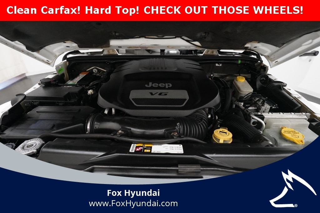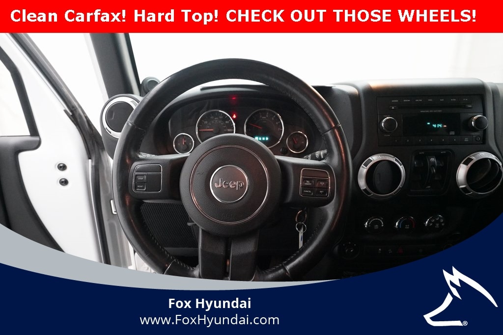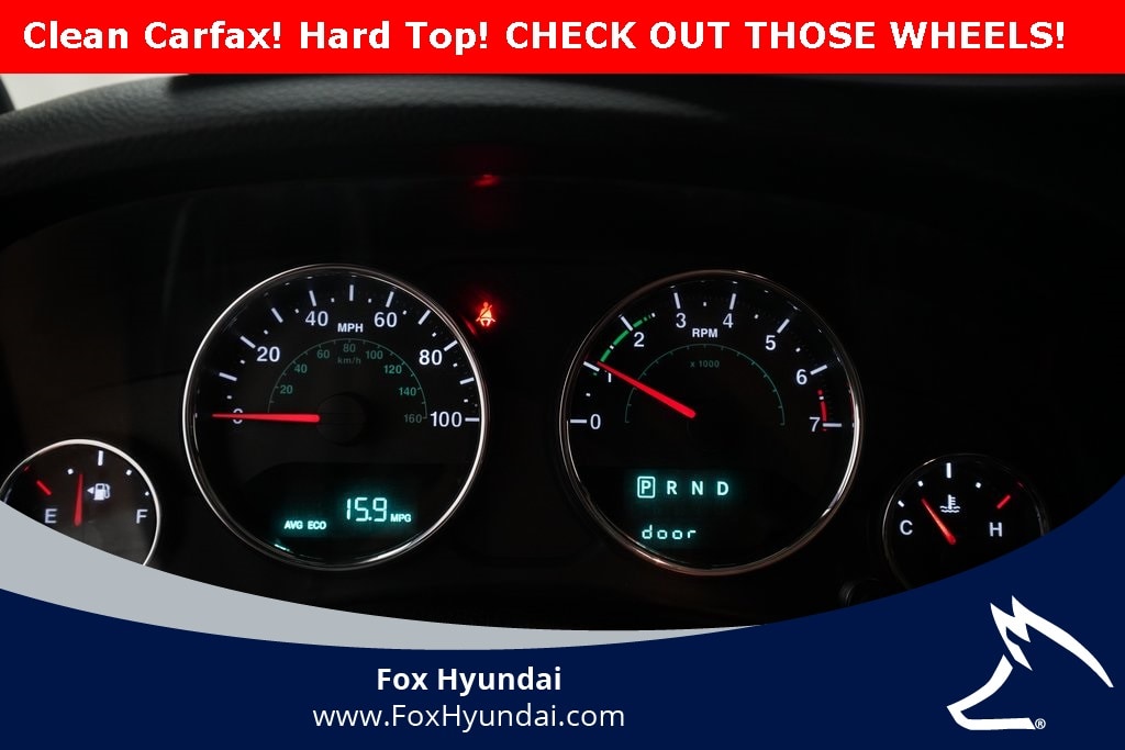 18" x 7.5" Polished Satin Carbon Wheels, 3.21 Rear Axle Ratio, 4-Wheel Disc Brakes, 7 Speakers, ABS Brakes, Air Conditioning, Alloy wheels, AM/FM Radio, Audio Jack Input for Mobile Devices, Auto-dimming Rear-View mirror, Brake Assist, CD/MP3 Player, Cloth Bucket Seats, Compass, Driver door bin, Driver vanity mirror, Dual front impact airbags, Electronic Stability Control, Front anti-roll bar, Front Bucket Seats, Front Center Armrest w/Storage, Front Fog Lights, Front reading lights, Fully Automatic Headlights, Heated Sideview Mirrors, Heavy Duty Suspension w/Gas Shocks, Illuminated Entry, Integrated roll-over protection, Leather steering wheel, Low Tire Pressure Warning, Occupant sensing airbag, Outside Temperature Display, Panic Alarm, Passenger door bin, Passenger vanity mirror, Power door mirrors, Power steering, Power Windows, Quick Order Package 24G, Radio data system, Radio: Uconnect 130 AM/FM/CD/MP3, Rear anti-roll bar, Remote Keyless Entry, Security System, Speed control, Split Folding Rear Seat, Steering Wheel Mounted Controls, Sunrider Soft Top, Tachometer, Tilt steering wheel, Traction Control, Trip computer, Variably intermittent wipers.