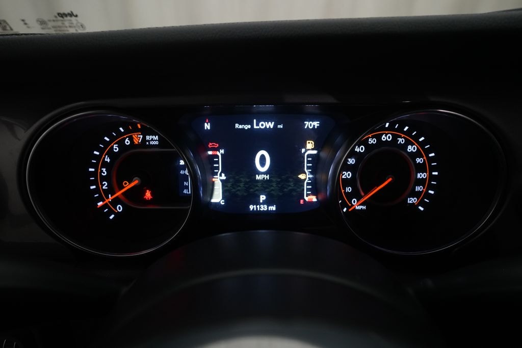 110 mph Vehicle Max Speed Calibration, 240 Amp Alternator, 3.73 Rear Axle Ratio, 4-Wheel Disc Brakes, 400W Inverter, 8 Speakers, ABS Brakes, Air Conditioning, Alloy wheels, AM/FM Radio, Available Sirius XM Radio, Apple CarPlay/Android Auto, Automatic temperature control, Black 3-Piece Hard Top, Brake Assist, Class IV Hitch Receiver, Cold Weather Group, Compass, Delay-off headlights, Driver door bin, Driver vanity mirror, Dual front impact airbags, Dual front side impact airbags, Dual-Climate Control, Electronic Stability Control, Freedom Panel Storage Bag, Front anti-roll bar, Front Bucket Seats, Front Center Armrest w/Storage, Front Fog Lights, Front reading lights, Fully Automatic Headlights, Garage door transmitter, Heated Front Seats, Heated Sideview Mirrors, Heated Steering Wheel, Heavy-Duty Engine Cooling, Illuminated Entry, Integrated roll-over protection, Leather steering wheel, Low Tire Pressure Warning, Manufacturer's Statement of Origin, MOPAR All-Weather Floor Mats (DISC), Normal Duty Plus Suspension, Occupant sensing airbag, Outside Temperature Display, Overland Cloth Bucket Seats, Panic Alarm, ParkView Rear Back-Up Camera, Passenger door bin, Passenger vanity mirror, Power door mirrors, Power steering, Power Windows, Premium Door Trim Panel, Quick Order Package 24G, Radio data system, Radio: Uconnect 4 w/7" Display, Rear anti-roll bar, Rear reading lights, Rear Sliding Window, Rear Window Defroster, Remote Keyless Entry, Remote Start System, Security System, Speed control, Split Folding Rear Seat, Steering Wheel Mounted Controls, Tachometer, Telescoping steering wheel, Tilt steering wheel, Traction Control, Trailer Hitch Zoom, Trailer Tow Package, Trip computer, Variably intermittent wipers, Voltmeter, Wheels: 18" x 7.5" Granite Crystal Aluminum.