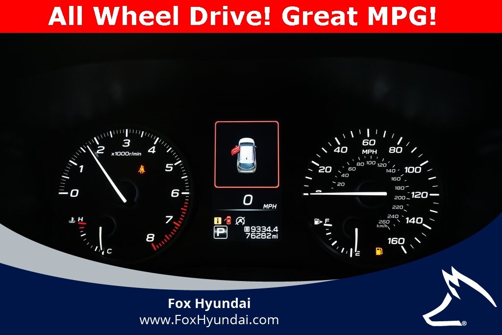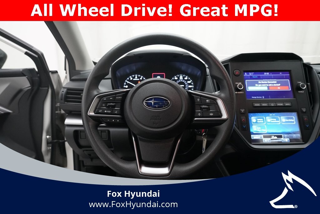 4 Speakers, 4-Wheel Disc Brakes, ABS Brakes, Air Conditioning, AM/FM Radio, Available Sirius XM Radio, Anti-whiplash front head restraints, Auto High-beam Headlights, Automatic temperature control, Brake Assist, Bumpers: body-color, Cloth Upholstery, Driver door bin, Driver vanity mirror, Dual front impact airbags, Dual front side impact airbags, Dual-Climate Control, Electronic Stability Control, Four wheel independent suspension, Front anti-roll bar, Front Bucket Seats, Front Center Armrest, Front reading lights, Fully Automatic Headlights, Illuminated Entry, Knee airbag, Low Tire Pressure Warning, Occupant sensing airbag, Outside Temperature Display, Overhead airbag, Overhead console, Panic Alarm, Passenger door bin, Passenger vanity mirror, Power door mirrors, Power steering, Power Windows, Radio data system, Radio: Subaru STARLINK Dual 7.0" Multimedia System, Rear Spoiler, Rear Window Wiper, Rear-View Camera, Rear/Front Window Defroster, Remote Keyless Entry, Security System, Speed control, Speed-sensing steering, Split Folding Rear Seat, Standard Model, STARLINK/Apple CarPlay/Android Auto, Steering Wheel Mounted Controls, Tachometer, Telescoping steering wheel, Tilt steering wheel, Traction Control, Trip computer, Variably intermittent wipers, Wheels: 16" x 6.0" Full Cap 1/2 J Steel, Windshield Sunshade.